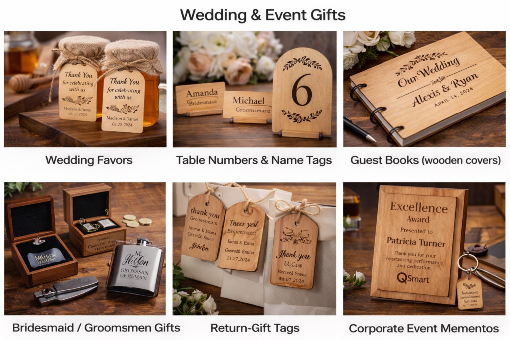 Custom laser-cut décor, signage, and details for weddings, parties, and special events.
